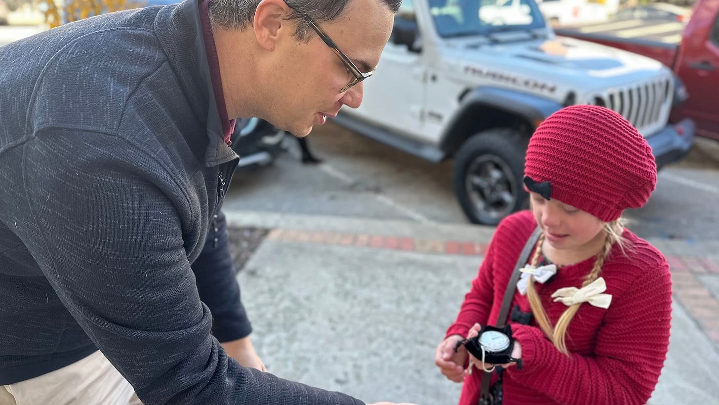 A week or so later, Rebecca told Indiana that she’d found a pocket watch in town that a man named Mr Nick had for sale and that he agreed to meet with them. And so one cold afternoon in mid-December, with Indy’s coat pocket full of dollar bills she’d been saving, they met up on the town square and Saint Nick showed Indy the pocket watch he’d found for her and she paid him for it.