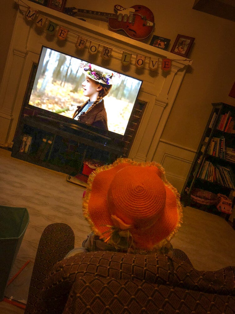 They’re not just entertainment and a way of forgetting our burdens for awhile, they’re inspirational. They can help remind us of the power of family, faith and community. For Indy, I think she just loves Anne’s big smile and personality and all her friends and Marilla and Matthew. Indy even has a hat that she calls her “Anne E” hat. She wears it all the time and is so darn cute.