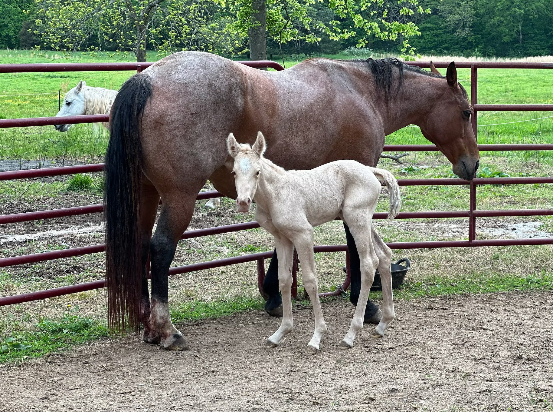 And one pretty day last May, we took Ria to be bred at the Tennessee Equine Clinic (where Joey used to work when I met her) with a buckskin quarter horse named Buck. This video is from when we took a school trip to pick her up and since then we’ve all been very excited about what the following Spring was going to bring. In January, we pulled Ria off our fescue grass and moved her and Casper to a dry lot on the other side of the farm. By early April we began making trips to the barn late each night and zero-dark-thirty each morning, just to keep an eye on her and her progress.