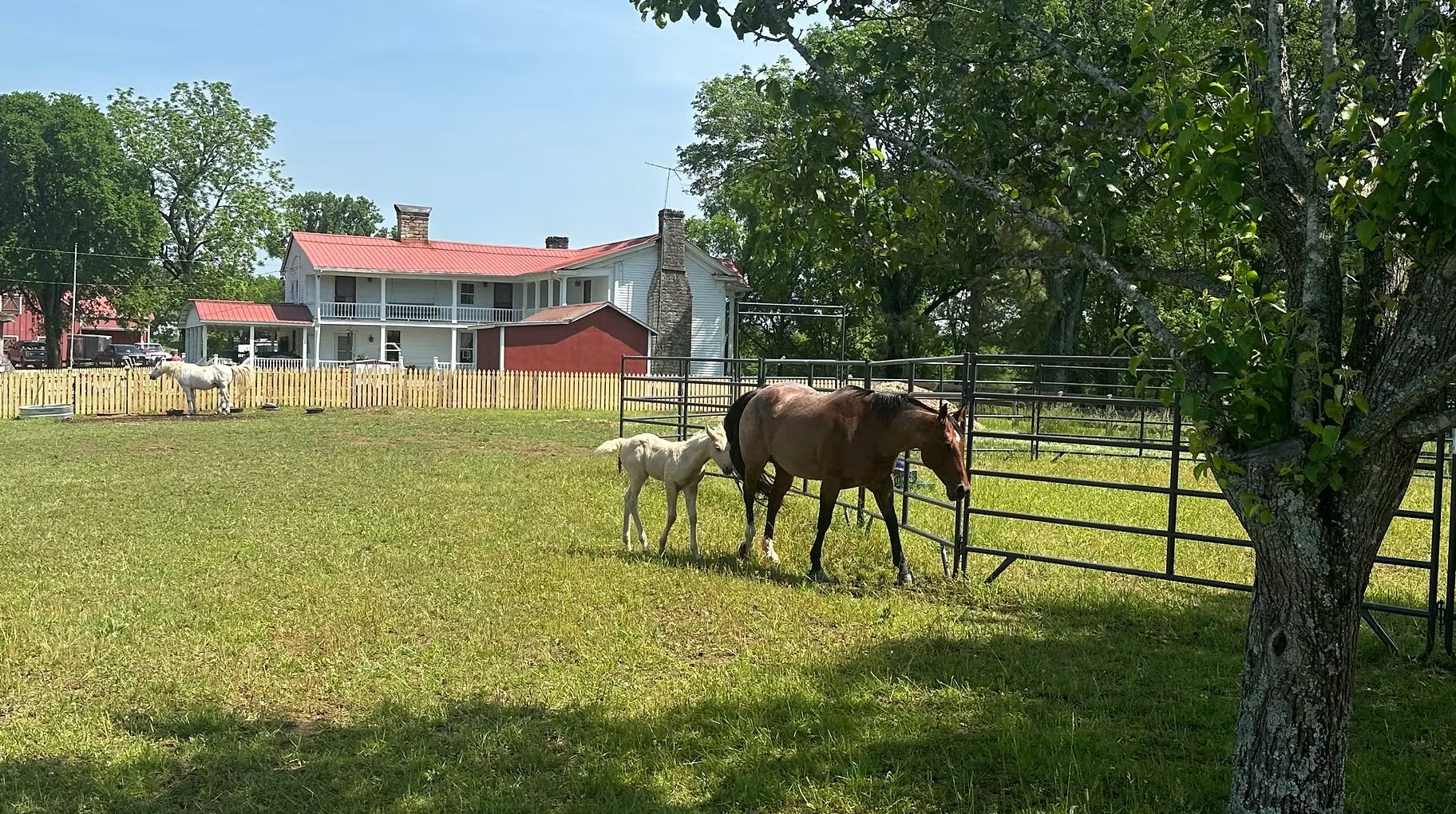 On Saturday, we moved Ria and Liberty to our main horse paddock here by the house, and they are so happy, being there reunited with Casper our big, little white pony. They’re only a few yards from the farmhouse now and are close enough to see from almost every window, which makes us want to go out and spend time with them. Especially little Liberty who’s already learned how to run and buck and call out to her mama whenever she’s upset or hungry.