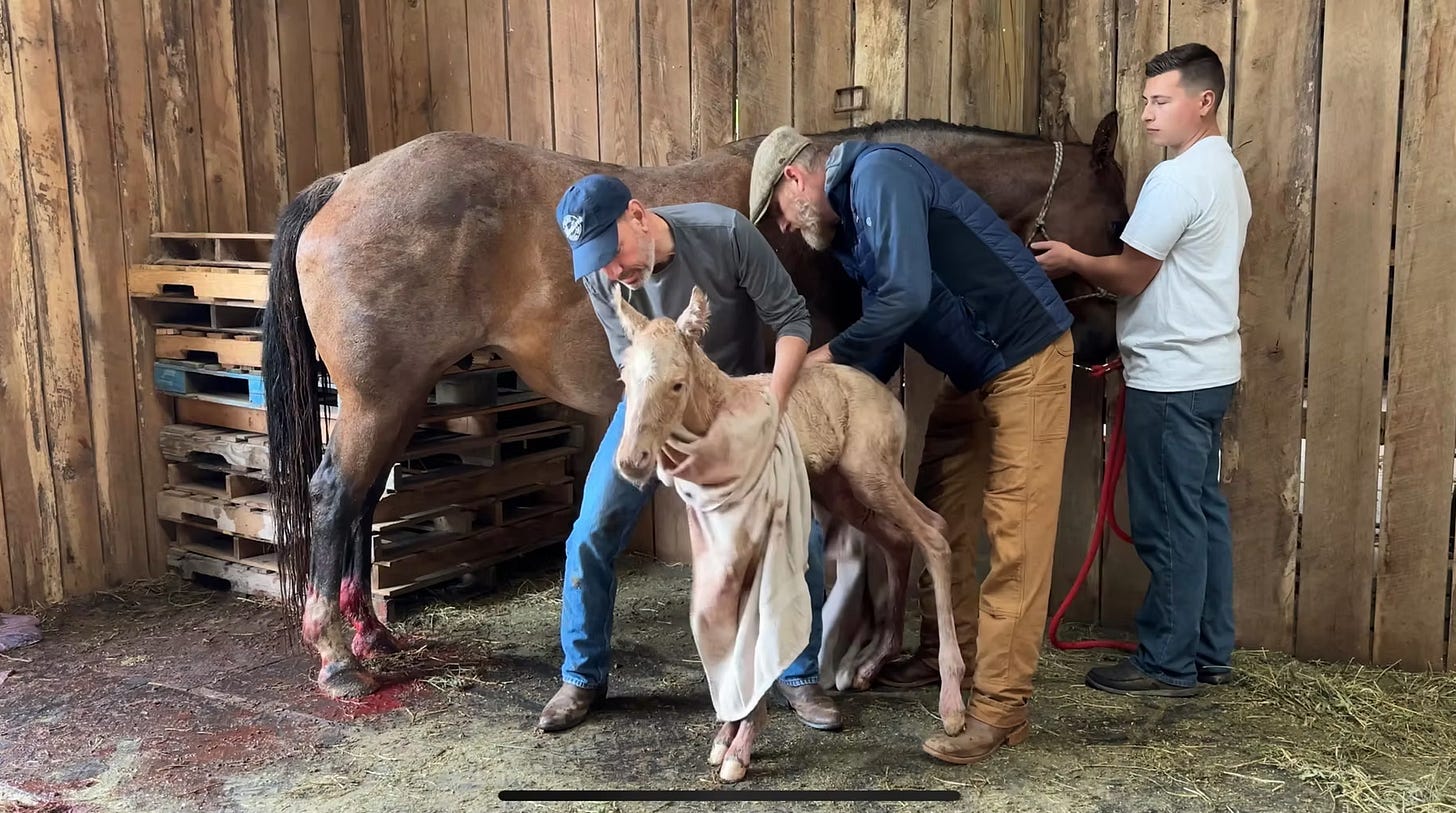 We’ve never had a horse foal born here before and were uneasy about the whole process, and even though it was Ria’s first time, she handled it like a champ, and within a few minutes, little Liberty was on the ground, breathing on her own, and trying to stand.