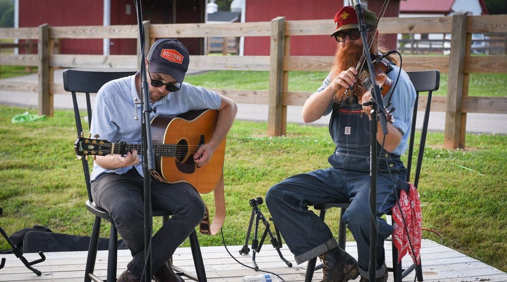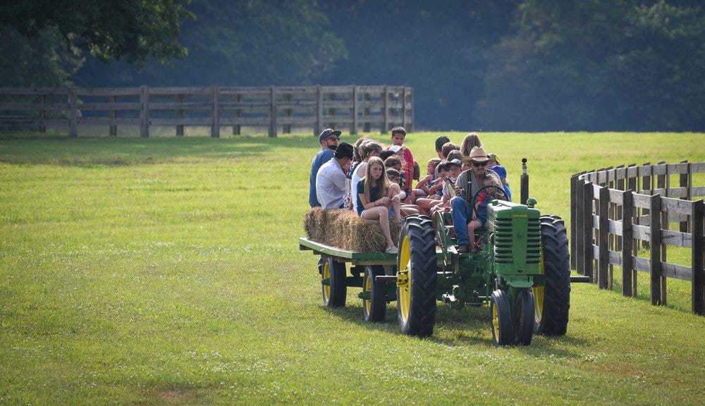 Besides some darn good brisket from Shaffer’s and boiled shrimp that our friend Jeffrey provided (that’s a whole other story), we had volleyball, horseshoes and lots of other fun games set up to play. Cowboy Danny took the kiddos on hay rides in the back field. Heidi’s boyfriend Dillon and Daniel Faulk kept everyone entertained with old-time fiddle and bluegrass tunes as we all visited and enjoyed the beautiful day.
