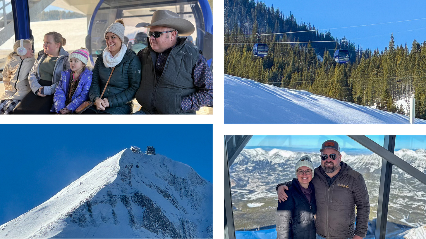 On Monday, we took a beautiful sleighride up a mountain pass through the snow, and yesterday our friends all wanted to go on a gondola ride up to the peak of Lone Mountain. A hair-raising 12,000 foot climb to the summit.