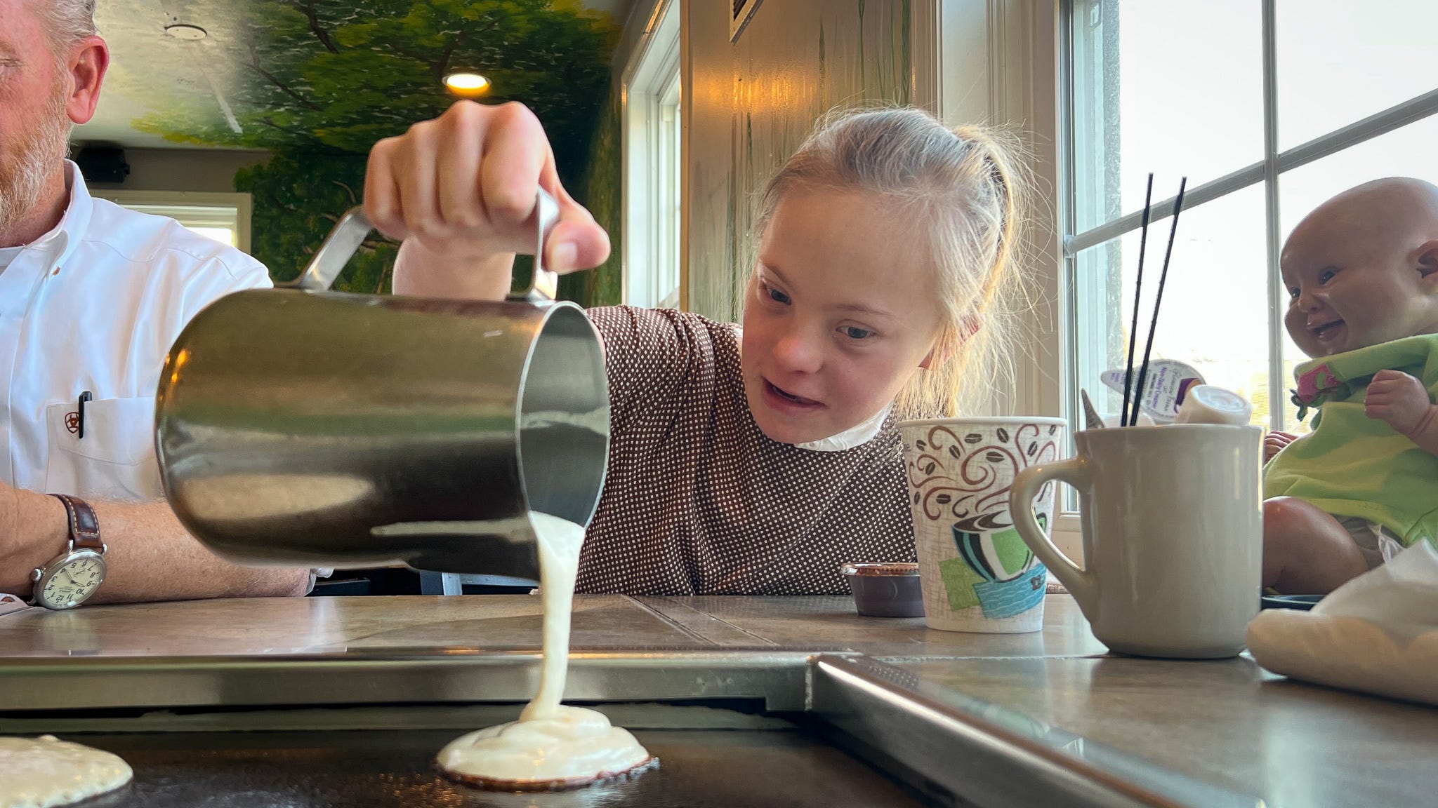 It’s a little cafe where they have griddles built right into your table, so you - or even more fun, the kids - can make your own pancakes right in front of you.