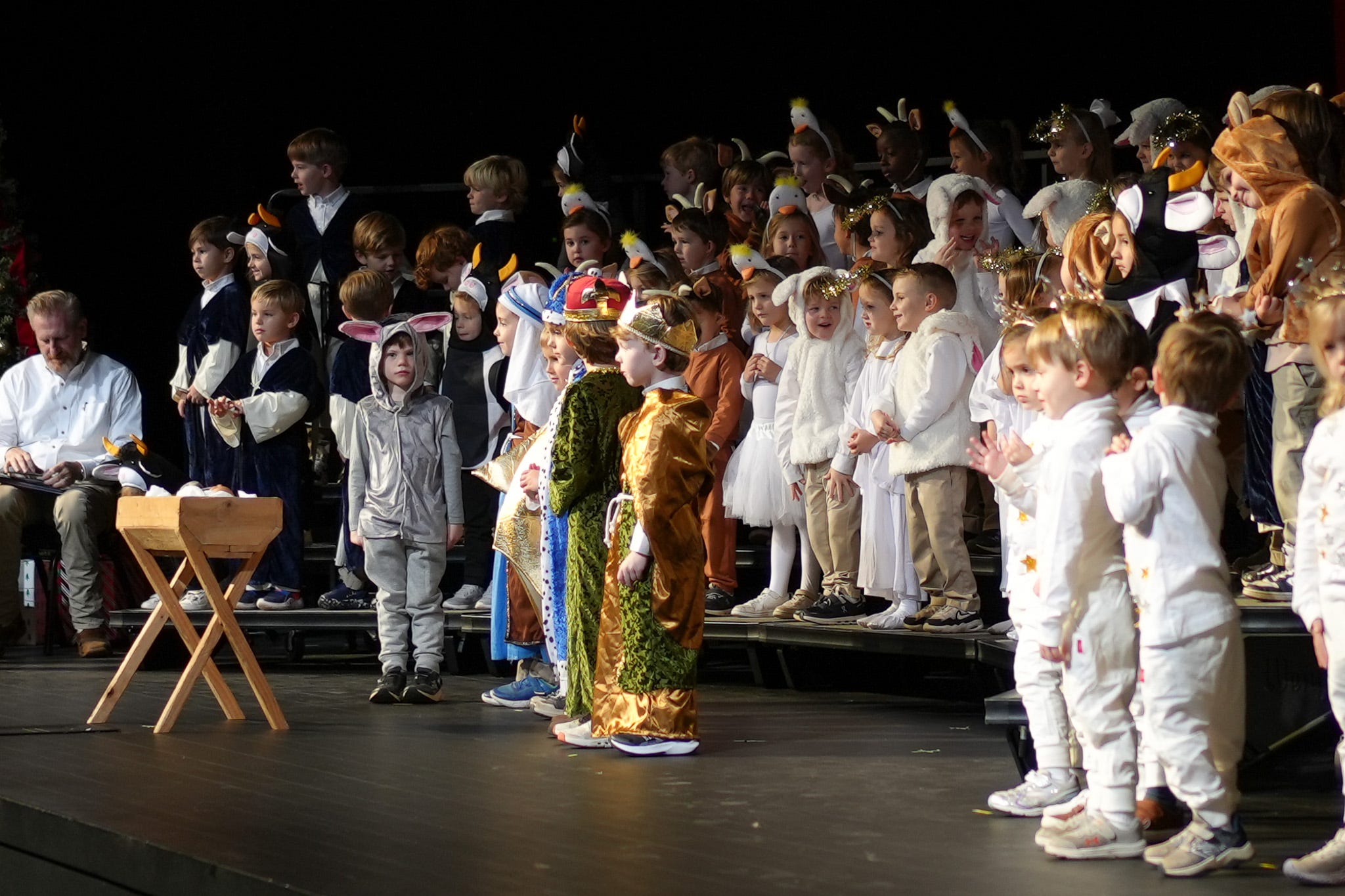 We pulled into the school at 8:20 and I was ushered through the halls and onto a stage, where dozens of antsy toddlers in the cutest little costumes were standing there, patiently waiting for me…while hundreds of parents were sitting in the audience doing the same thing.