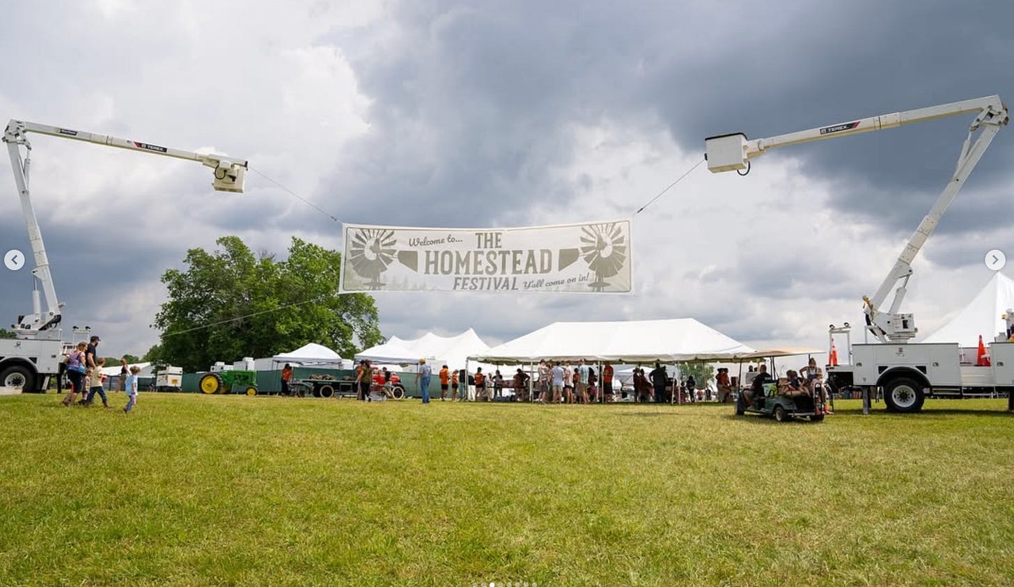 Through the years he’s continued to stand beside, and encourage us in our endeavors. Each June, he sends a couple of his big boom trucks up here to to support (literally and figuratively) our annual Homestead Festival.