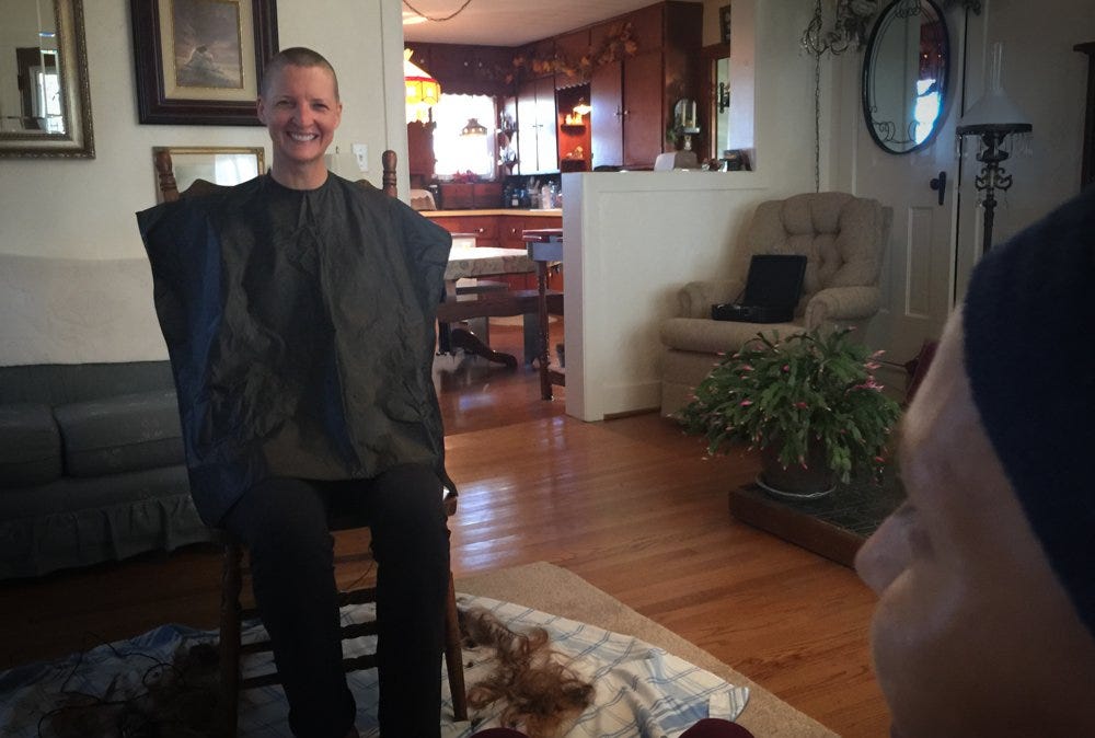 When Joey’s sisters and Daddy cut their hair off to support her… it was Julie who handed me the clippers and sat in the chair and asked me to “make her hair fall off” first.