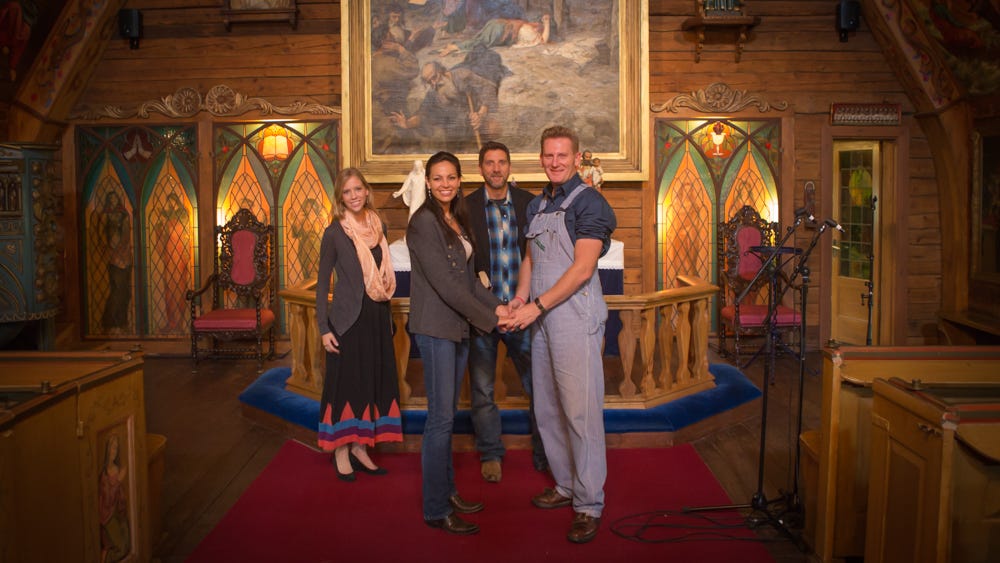 On our ten-year wedding anniversary, we were on tour in Sweden with Dwight Yoakam. So we renewed our vows in a 300 year old chapel with Aaron and Heidi by our sides.